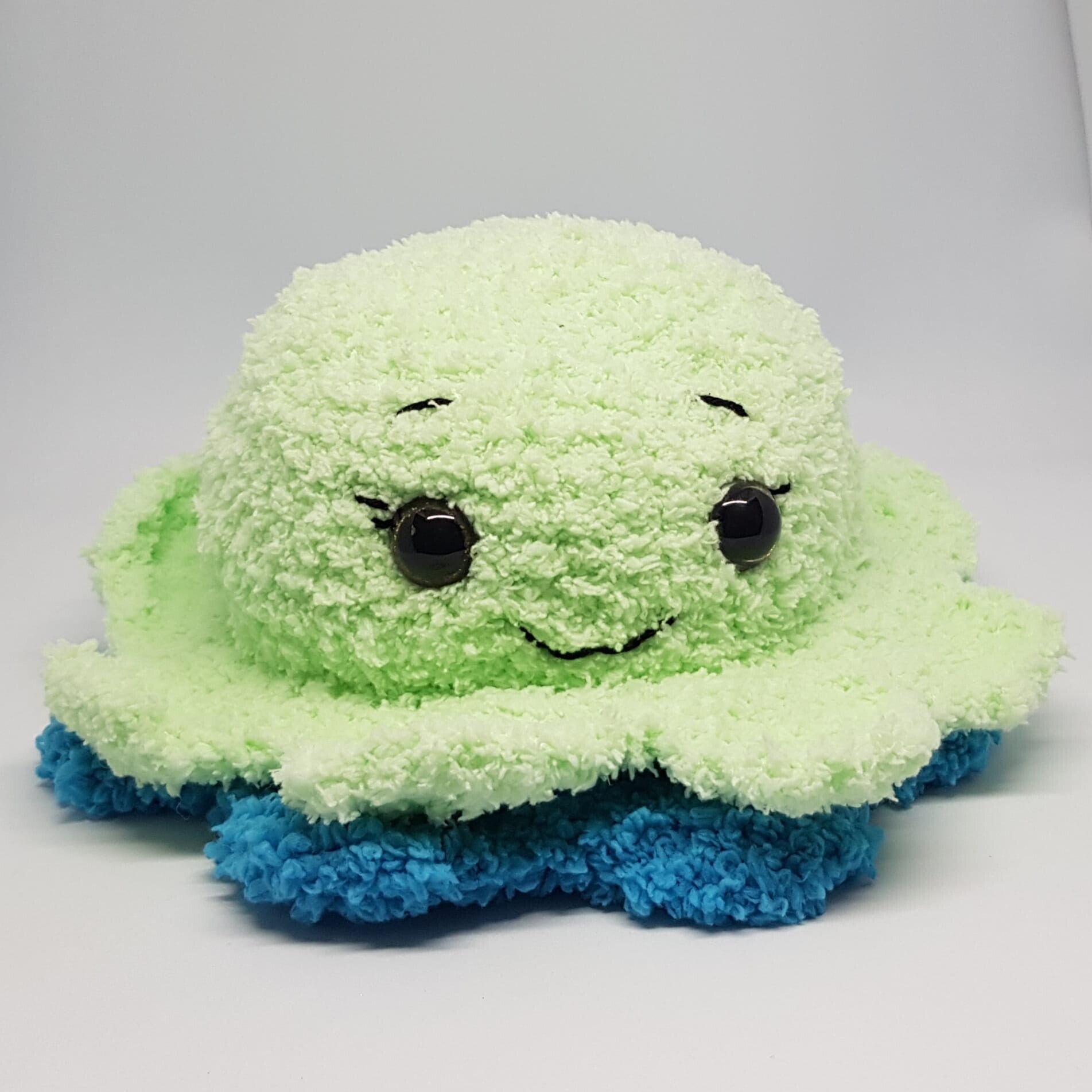 Schattige TikTok trending reversible emo octopus. Deze zachte en schattige knuffel heeft een uniek dubbelzijdig tweekleurig ontwerp, speciaal ontworpen om jouw gemoedstoestand uit te drukken. Door de knuffel binnenstebuiten te drukken kun je laten zien of je vrolijk of boos bent. De blije octo's hebben vrolijke glitteroogjes. De knuffel is wasbaar op 30 graden.